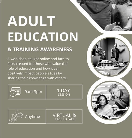 Adult Education & Training AwarenessIf your client values the role of education and how it can positively impact people’s lives then look no further, this course will show them they way. A range of skills we be taught such as learning unit standards, assessment involvements, the 10 levels of qualifications, the difference between an educator and assessor and plenty more. After completing this six-hour workshop, a certificate and letter of recommendation will be provided for the client.