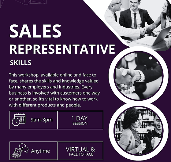 Sales Representative SkillsIs your client ready to take the next step in retail? This course covers a wide range of skills and knowledge valued by many industries and employers such as: KPIs, business strategies, product knowledge, target customer profile. After completing this six-hour workshop, a certificate and letter of recommendation will be provided for the client.